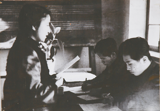 作曲系第二屆學生谷建芬(左)參加考試(主考教師竹風)(1952年)