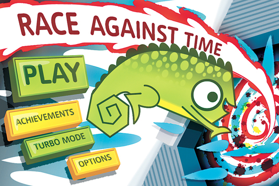 《爭分奪秒》將手機娛樂與藝術史融合在一起。用戶扮演一只英雄變色龍,它以現代藝術史為時間軸完成一次拯救世界的藝術之旅,粉碎邪惡的灰度博士想把整個世界的顏色抹去的陰謀。游戲背景、音樂和敵人都在不斷改變,角色設計和繽紛的背景正是該游戲的魅力所在。