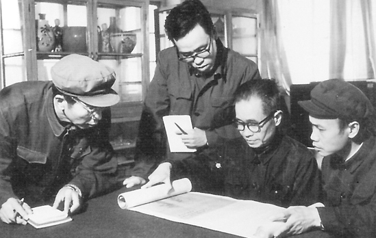 1978年10月,徐邦達與學生們在青島博物館鑒定書畫。自左至右:楊臣彬、肖燕翼、徐邦達、楊新