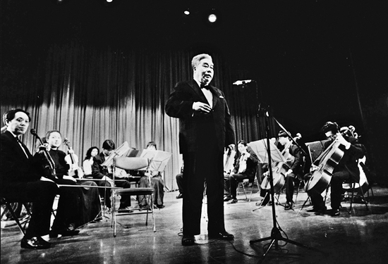 1982年夏,李德倫率中央樂團小分隊在北京紅塔禮堂作普及音樂會,門票0.5元。圖為演出前,李德倫在普及交響樂常識,以便讓觀眾了解如何欣賞交響樂。從作品分析到指揮家對作品的理解,從各聲部的交響到聽眾該重點聽什么,他用最能夠讓人們理解的語言,讓人們可以在短時間被帶入音樂。時至今日,張國勇等音樂家仍在多方努力爭取讓大眾有更多欣賞劇場藝術的機會。 陳 雄 攝