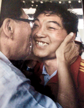 1984年,在許海峰獲得中國首枚奧運金牌后,中國代表團團長黃中激動地親吻許海峰,喜極而泣。
