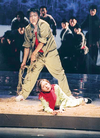 “落馬湖荒原上走來了一群拓荒者,他們沒有愛的權利……”這是寫在《荒原與人》開頭的話。《荒原與人》寫于1985年,講述了一群知青在黑土地上的殘酷青春。該劇一經發表便引起巨大反響,曾榮獲1988年曹禺戲劇文學獎,1989年獲新中國成立40周年榮譽獎。雖然被眾多大導演看中,但這部《荒原與人》自從問世就被戲劇評論界預言為“首演一定會失敗”,因為它在敘事結構上打破了傳統的寫法,時空的變換相當頻繁,大段大段的內心獨白,在舞臺上很難表現。1987年,時任中央戲劇學院院長的徐曉鐘曾帶著鞏俐、伍宇娟這班表演系的學生到北大荒體驗生活,而且分配了角色,原定1989年上演,后來因種種原因流產。此后,北京人藝在林兆華導演的帶領下,導演任鳴和編劇李龍云等也到東北體驗生活,但依然沒有成功上演。2006年,該戲再度上馬,由國話副院長、著名導演王曉鷹親自擔任導演,親自點兵完整排演,這次演出亦令作者李龍云深感滿意。