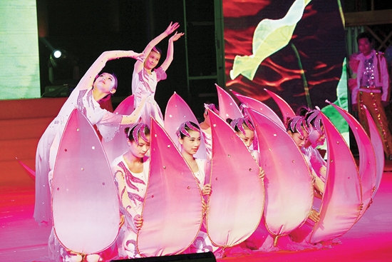 8月3日晚,山東省檢察官培訓(xùn)學(xué)院棗莊分校——頤正園的文藝廣場(chǎng)上燈光格外明亮,優(yōu)美的旋律響起,滕州市人民檢察院的女檢察官們一襲粉荷色舞裙,清風(fēng)般地躍上舞臺(tái),為荷花頌文藝晚會(huì)拉開帷幕。從她們?nèi)彳浡畹奈枳恕⑸癫娠w揚(yáng)的笑容中難以看出,她們就是平時(shí)工作中秉公執(zhí)法、鐵面無私的檢察官。這支《荷花賦》以一朵綻放的荷花為舞臺(tái)造型結(jié)束了表演,贏得了滿堂喝彩。