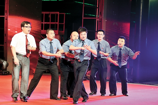 當(dāng)親情與法律發(fā)生碰撞,檢察人會(huì)做出怎樣的回答?由棗莊市人民檢察院創(chuàng)演的小品《最后一班崗》給了觀眾一個(gè)明確而完美的答案。小品中,即將退休的老檢察長(zhǎng)在接手最后一件案子時(shí),從小就失去母親的女兒為男友求情,請(qǐng)父親網(wǎng)開一面,彌補(bǔ)多年來自己缺失的父愛、母愛。面對(duì)愛與恨的交織、情與法的考驗(yàn),在檢察官心中,公正無私永遠(yuǎn)是無悔的選擇。當(dāng)小品中的檢察長(zhǎng)作出這一無悔抉擇時(shí),臺(tái)下掌聲陣陣,這其中飽含著檢察人之間達(dá)成的強(qiáng)烈共鳴,也流露出觀眾對(duì)檢察人的敬重與欽佩。滕州市人民檢察院創(chuàng)演的情景歌舞《迎親》揭開年輕檢察官三推婚期的謎底,在護(hù)法為民的道路上,兒女私情只能暫放一邊,勤勤懇懇、無怨無悔才是檢察人生不變的主題。伴隨著魯南的經(jīng)濟(jì)發(fā)展,檢察隊(duì)伍建設(shè)、人才培養(yǎng)也在不斷推進(jìn),棗莊市薛城區(qū)人民檢察院創(chuàng)編的群口相聲《新聞達(dá)人秀》向觀眾展示了檢察隊(duì)伍中的新鮮血液,這些年輕的檢察官有來自五湖四海的精英,也有大洋彼岸學(xué)成歸來的海歸,他們朝氣蓬勃、熱忱滿腔,盡心為檢察事業(yè)譜寫青春的篇章。