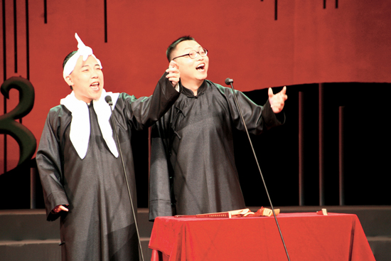 郭剛認為,區域間的曲藝合作是很有互補性的。他舉例說,比如武鄉鼓書和鄱陽大鼓,在唱腔、表演程式上,都各具特色。一般來講,南方常常有歌有舞,注重于唱;北方像潞安大鼓,就類似于過去的鼓書,強調講故事。隨著交流增多,南方的曲種也漸漸重視故事性了,而北方有的曲種則陣容擴大了,伴奏也配唱了。“但是,說到各地曲藝相互間的互補性,最突出的還是創作。曲藝創作一直是曲藝發展中的短板,許多作者需要更多的切磋交流,如何表現人物啊,如何描繪細節啊,等等,形式可能不同,但題材相似,文本的溝通就有更多的碰撞,借鑒、學習的機會多了,受益也會更大。”