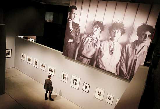 展廳內(nèi)的巨幅攝影作品:設(shè)計(jì)了第一把鋼管椅的馬歇布勞耶與學(xué)生們的合影