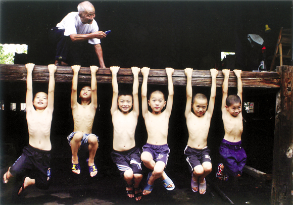 浙江麗水遂昌大柘中心小學,林建平老師指導孩子們訓練。 葉利芬 攝