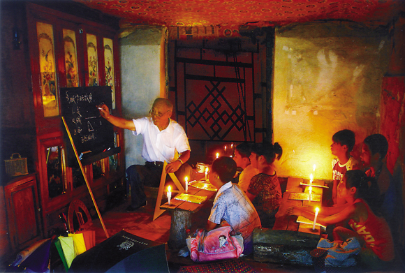 這位老教師已經退休,為了留守孩子不荒廢學業,他發揮余熱,在自家炕頭建了“教室”,為留守學生義務上課。 佟飛 攝