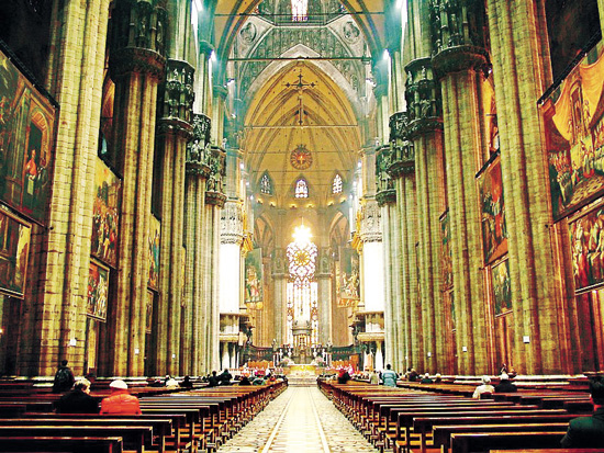 和諧與對稱是緊密地聯系起來的,在米蘭大教堂里,處處體現了“建筑是凝固的音樂”。