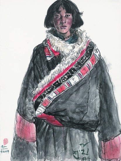 長江是堅持走寫實道路的藝術家。他認為,在藝術的長河中,寫實的道路并未也不可能窮盡,因為內容無比豐富又在不斷變化著的客觀世界,給寫實藝術提供了取之不竭、用之不盡的資源,因為人們對現實的感知也不斷在擴展與深化,由此會不斷影響人們的藝術感覺與創造,會賦予寫實作品以新的時代感和新的審美趣味。長江的寫實功夫是通過幾十年的訓練不斷取得與提高的。除了在學校圍墻內的基礎訓練外,主要是通過在深入生活過程中的寫生不斷加以完善。長江有自己的“生活基地”,定期到那里去生活,去體驗,去畫素描、速寫,從事藝術創作。他的生活基地是甘肅、青海、四川、西藏高原地帶藏族群眾居住的地方。他先后去那里有數十次之多。他說:“藏族聚居區高原之旅,每次都有新鮮的感受和體會。”他愛那里的山山水水,說自己“在這雄山壯水之中盡情開懷地感受著大自然的力量和它的神奇”。他更喜愛這里的藏族同胞,他們“沒有人為的修飾,率真樸素,充滿野性的活力。在他們強悍的外形里飽含著英武的挺拔之美”。長江還在這里的人物與山水情貌中,體會它們蘊含的精神,領悟其內在的意義,從而使自己的心靈世界得到凈化與升華。在這個過程中,他越來越清晰地認識到,當前我們的“藝術創作缺少內含的張力和淳厚,最重要的原因是藝術家脫離了對大自然的感悟,缺少了用自己的心靈與自然虔誠對話的勇氣所致”。他努力走近這奇妙自然的深處,走向藏胞純樸的內心世界。他作品涉獵的題材很廣,自然景色、生產勞動場面、宗教儀式、民俗節日、寺廟民居……有多至數十人參與、氣氛熱烈的大場面,也有在茫茫原野中少量的人物與牦牛。他專注于西藏題材不是為了獵奇,也不是出于形式美感的目的,而是為“藏民族精神世界中一種永恒的生命活力”所驅使。他說:“我想通過表現西藏人生活的精神性來揭示人類生存的永恒意義。”他在追尋和發現藏族群眾豐富的精神世界奧秘的過程中,也在尋找自己作為藝術家立身的精神之本,并尋找到他表達西藏精神的獨特藝術語言。可以這樣說,這種語言既從客觀世界也從他主觀世界中孕育和提煉。客觀與主觀兩者的有機交融,形成一種獨特的藝術境界。這是與藏族同胞的人生理想與宗教觀念在精神上相對應的語言:對自然的虔誠,對真善美的執著,內容與形式的單純和質樸。