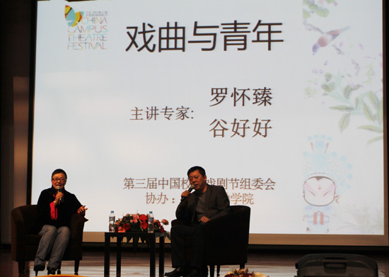 10月23日,在第三屆中國校園戲劇節活動期間,中國劇協副主席、上海市劇協主席羅懷臻和上海昆劇團副團長、第23屆中國戲劇梅花獎獲得者谷好好一同走進上海金融學院,為上海金融學院的師生帶來了一場題為“戲曲與青年”的論壇。