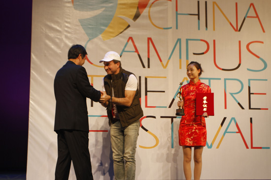 中國劇協分黨組書記、駐會副主席季國平為莫斯科藝術劇院附屬戲劇學院演出的話劇《我們都是卡拉馬佐夫兄弟》頒發“特別演出獎”
