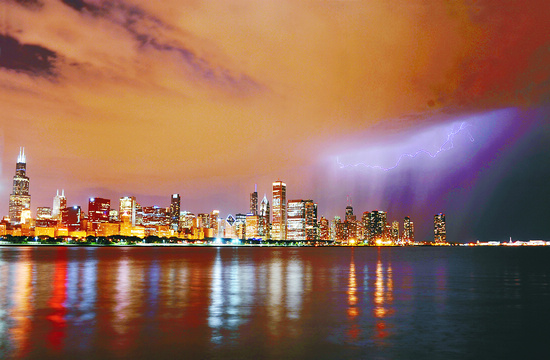 芝加哥之夜 芝加哥初夏的夜晚時(shí)常雷雨大作。絢麗的城市燈光與劃破天際的閃電交相輝映,更襯托出這座迷人城市的變幻莫測。李慶梅(駐美國大使館)攝于美國