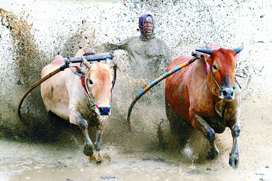 賽牛 每年豐收季節(jié),在印度尼西亞西蘇門答臘省巴東地區(qū)都要舉辦大規(guī)模的賽牛活動,場面十分壯觀、驚險(xiǎn)。鐘瑞明(駐印度尼西亞大使館)攝于印度尼西亞