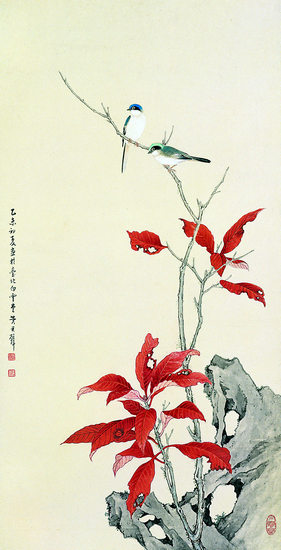 紅葉雙禽 1955年 黃君璧