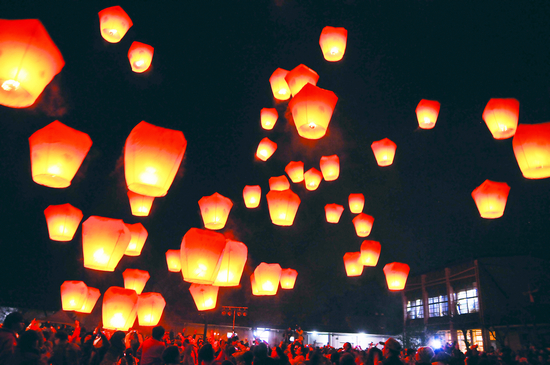 平溪位于新北市偏遠山區。元宵節至,村民釋放天燈以報平安,后逐漸演變成今日北臺灣元宵時節最具民俗色彩的祈福活動。天燈亦稱孔明燈,以綿紙糊罩、竹簽作箍,形狀恰似一只四角的紙袋,上面寫著人們的祈愿。施放時將燈腳下含油的金紙點燃,待熱氣充滿即可升空。 邱成穩 攝 摘自文化藝術出版社2012年9月出版的《臺北道地 地道北京》