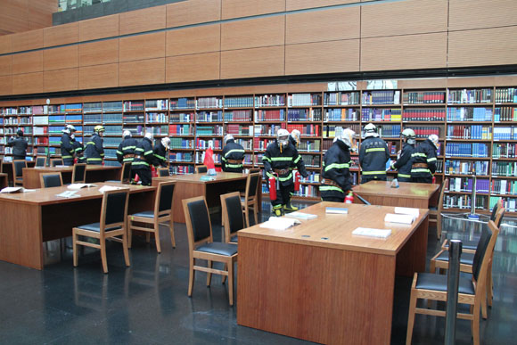 11月23日,為進一步提高安全消防意識,增強防災減災觀念,熟悉撲救初起火災、報告火警、組織和引導人員疏散等自救程序,國家圖書館閉館半天,特別邀請了來自首體南路消防中隊的官兵,聯合組織實施本年度消防應急演練。本次演練是國家圖書館有史以來首次與消防官兵聯合組織的消防應急演練,專業程度堪稱歷次演練之最。國家圖書館是國家消防安全重點單位,多年來始終將消防安全工作作為全館各項工作開展的生命線和保障線,堅持定期舉辦消防應急演練以確保全館員工對安全穩定做到警鐘長鳴,常抓不懈。