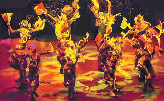 “真是太美、太炫了!”看完《玉蘭·愛(ài)的世界》后很多觀眾都給出這樣的評(píng)語(yǔ)?!拔馈焙汀扒靶l(wèi)”也正是該劇想帶給觀眾的視覺(jué)感受。融合了多種藝術(shù)形式的《玉蘭·愛(ài)的世界》包括“星系長(zhǎng)絲”“火之風(fēng)”“新綠”“綻放”等12個(gè)章節(jié),50余名演員在90分鐘內(nèi)以先鋒戲劇視角和歐美潮流藝術(shù)演繹了一場(chǎng)視聽(tīng)盛宴。優(yōu)美動(dòng)聽(tīng)的音樂(lè)、美輪美奐的舞蹈、驚險(xiǎn)刺激的雜技、磅礴壯觀的舞美、精致華美的服裝……讓觀眾在贊嘆中感受著多元藝術(shù)的魅力。