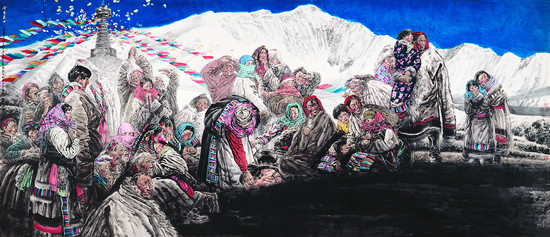 除了上述畫家外,劉振夏、謝志高等中國畫人物畫高手積淀多年的個人展覽會也在中國美術館一樓圓廳亮相,老一輩畫家的最新探索成為其展覽共同的亮點。而諸如李翔、李象群等正值盛年的美術家也都在各自領域展示了其當前重要的創作成果。與這些扎堆在京城辦展的名家不同,吳長江和馬書林兩人都不約而同地選擇了在上海美術館辦展。那個具有“洋派”味道的美術館,當被吳長江的新水彩畫(水性顏料、炭精與紙的最新實驗)藏族系列和馬書林筆下的可愛貓咪與戲曲人物占據時,有著海派傳統的上海畫壇還是為之一振。當然,這兩位畫壇名家會同劉大為,在不久的將來,或許就是明年的某個時段,將帶著他們多年的創作成果,來到那個他們既熟悉又陌生的中國美術館圓廳,向京城畫界展示與敘述幾十年來發生在他們身上的藝術故事。