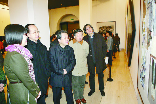 中國文聯黨組成員、副主席、中國文學藝術基金會常務副理事長左中一,中央文史研究館常務副館長、中國文聯副主席、中國美協副主席馮遠,中國美協分黨組書記、駐會副主席吳長江,中國美術館副館長馬書林等與青年藝術家在展覽現場交流