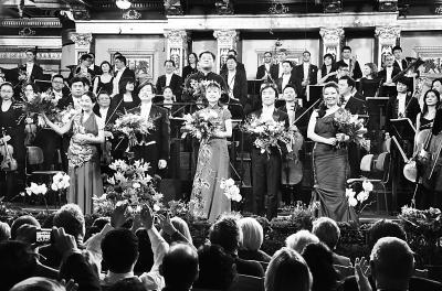 一對年約七旬的奧地利夫婦表示,他們喜歡中國音樂,已連續數年聽一年一度的中國新年音樂會。與往年相比,今年的新年音樂會至少有三個特點:一是今年5名年輕獨唱和獨奏演員的水平都非常好,從他們身上可以看到中國音樂教育整體水平的快速提高。女高音和慧的聲音和演唱技竅無可挑剔,無疑是世界一流的。男高音石倚潔的音色和演唱也非常好,完全可以勝任歐洲歌劇的不同男高音角色。二是今年演奏的曲目有一半是歐洲音樂,讓歐洲觀眾更覺熟悉、親近。同時,又不失介紹中國音樂,如姜克美演奏的板胡《花梆子》、臺灣小提琴演奏家梁茜雯表演的《風火電音三太子》等,讓人感受到了中國傳統音樂與現代音樂的傳承與交融,也感受到了中國音樂與歐洲音樂的交流與對話。三是今年的演出團隊“海峽愛樂樂團”由來自中國內地、臺灣、香港和澳門的藝術家組成。他們知道春節是中國人團聚的節日。2013年中國春節前夕,兩岸四地的藝術家聚集到維也納,在給觀眾帶來藝術享受的同時,也向觀眾展示了“兩岸四地,其樂融融”的景象。這令他們印象深刻,頗受感動。