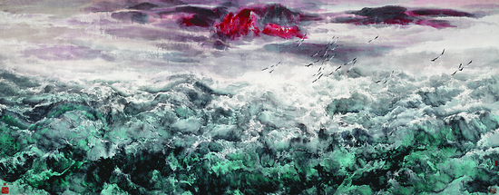 宋雨桂的國(guó)畫《蒼溟》,充分顯示了其扎實(shí)的筆墨功底,結(jié)構(gòu)布局十分大氣,筆墨交融,用色淡雅,其作品尤崇尚氣韻,筆尖、肚、根皆能連用自如,瀟灑厚重。王守業(yè)的國(guó)畫《大工匠》、曲嚴(yán)松的油畫《記憶中的電廠》等作品則將撫順作為老工業(yè)基地的一面充分展現(xiàn)出來(lái),讓觀者通過(guò)欣賞畫作,領(lǐng)略撫順獨(dú)具特色的自然風(fēng)光和人文景觀。濃情一抹醉丹青,情是永恒不變的主旋律。從黑土地走來(lái)的撫順美術(shù)人,帶著對(duì)家鄉(xiāng)的熱愛(ài)、對(duì)時(shí)代的關(guān)切和對(duì)藝術(shù)的追求,正以獨(dú)特的藝術(shù)身影匯入當(dāng)代中國(guó)浩浩蕩蕩的藝術(shù)發(fā)展洪流之中,濺起帶有撫順印跡和色彩的藝術(shù)浪花。