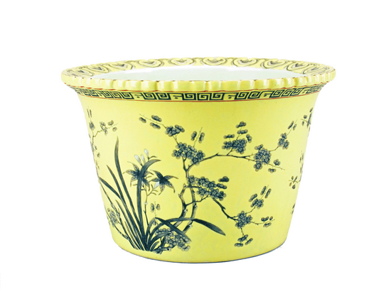“體和殿”款黃地墨彩折枝桂花紋花盆