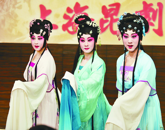 1月28日,上海昆劇團演員在臺北舉行的宣傳活動上演出《煙鎖宮樓》片段。