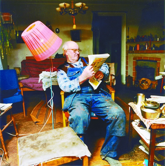 單純從照片來看,我們可以想象這是北歐典型的孤獨老人的生活。窗外白雪皚皚,玻璃上的一條裂紋用一段膠帶粘在一起,而一眼看去的無邊白雪,也許暗示了老人住的這所房子遠離城市或村舍,孤零零地矗立在林中。彼得的這組照片用非常平實客觀的視角,沒有大廣角和奇異視角帶來的視覺沖擊。除了幾幅斯萬在家中的環(huán)境肖像外,整個系列拍攝的都是和斯萬生活有關(guān)的物件,往往是近距離拍攝,揭示了豐富的細節(jié),同時也消解了任何感情的色彩,冷靜而客觀。與彼得拍攝的其他系列不同,這組照片采用了彩色攝影的手法,少了他以往黑白攝影中的詩意,卻使普通的物件被膠片真實記錄下來。