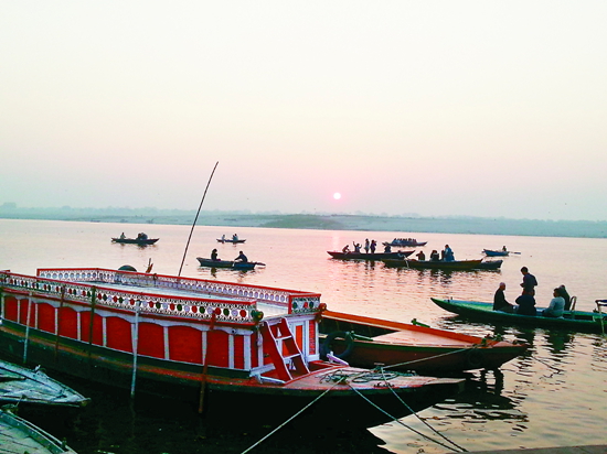 恒河 在一般人的觀念里,通常“圣河”=“清流”,不過即使現實中它是條“濁流”,也依舊不會傷及恒河的神圣性。恒河中游的瓦拉納西被稱作“圣城”,它以宗教中心的身份繁榮至今,且從未衰退過,此地能保有3000多年的歷史,可說是世界上罕有的城市。天未亮,即渡上小船劃向河中央,從水面上看恒河更加寬廣,對岸的地平線開始閃閃發亮,太陽即將升起。