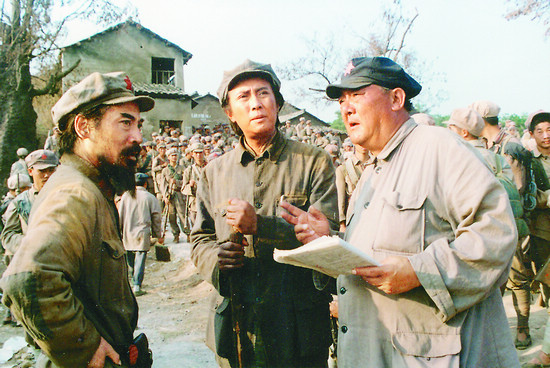 新中國成立以來,雖然陸續拍攝了不少反映長征題材的影視作品,但多為表現局部或某一歷史人物在某一段落中的豐功偉績。我所拍攝的電影《金沙水拍》也是截取了紅軍四渡赤水、彝海結盟的片斷。長期以來,影視作品中的長征從勝利走向勝利,四渡赤水、飛奪瀘定橋、爬雪山、過草地,不斷粉碎敵人的圍追堵截,到最后在甘肅勝利會師,長征成了神奇的代名詞。而《長征》這部電影卻是依據大量鮮為人知、有據可查的歷史人物和事件創作而成,展現長征的全貌。從湘江血戰寫起,以黨內兩次大的路線斗爭為主線,著力表現了毛澤東臨危受命,以其高超的領導藝術和軍事指揮才華力挽狂瀾,挽救了黨,挽救了紅軍。這是一個嶄新的切人點,在對長征進行一次客觀公正的表述。我們還挖掘出一些新的史料,如周恩來在同李德爭論時,一怒之下拍案而起;朱德在土城一役中,臨危不懼、再三請命,親赴前線指揮的將帥風范。