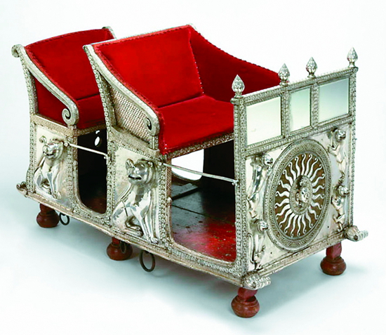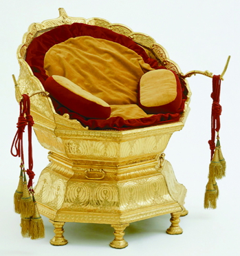 據說該王座是用來慶祝勝利而特別制作的。王座的設計理念和中部收窄的形狀有著各種宗教藝術造型的特質,象征著貞潔和創造力,造型獨特而神圣。