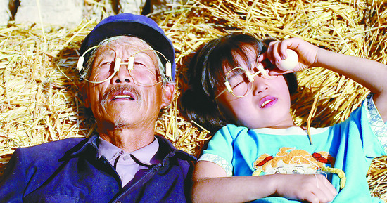 影片中,老馬身邊兩個五六歲的孩子——孫子和外孫女,同樣是主演,跟老馬一起完成了影片的情節推動和細節呈現。也正是因為有了這兩個純真的孩子,使得這部主題有些沉重的影片,并不那么壓抑,童真童趣填充在平淡生活中,讓觀眾忍俊不禁。這兩個孩子是李睿珺從村子里的小學找的。最初選了20多個男生女生,“挑那些眼神干凈的、個頭年齡合適的”,然后聚在一起訓練。“逐漸地你就會知道誰不行,有的人記不住臺詞,有的人特別緊張,有的人不會表演,有的人又特別想表演,有些孩子后來自己都不來了,有的就特別感興趣。”他對記者說,“這是一個自然淘汰的過程,最后剩下的就是這兩個孩子。”