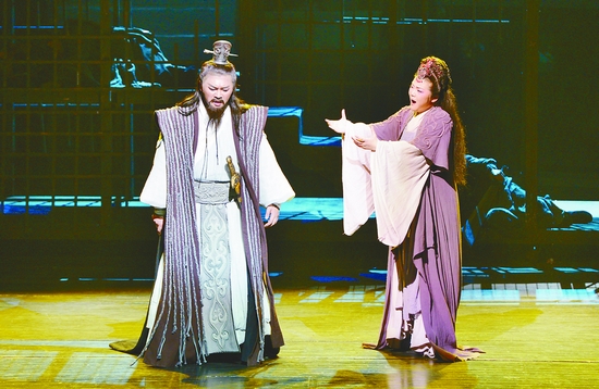 筆者在此主要談談這部歌劇存在的一些問題,以求修改調整,打造精品。《釣魚城》戲劇性方面的修改是故事如何更為可信,情節發展如何更有邏輯,人物塑造更為真實。加工修改主要在上半場,音樂問題也主要在上半場。宣敘調如何改得更上口、更順耳,詠嘆調如何更流暢、更動人,是作曲家需要考慮的問題。其次是音樂段落展開與連接,織體寫作與配器有許多粗糙的地方需要細致修改,精心排練。