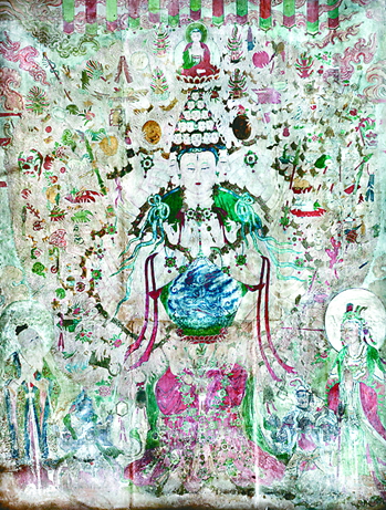 在武普敖眼中,壁畫拍攝不同于一般的拍攝。它是通過攝影的紀實特點,再現(xiàn)古代壁畫的藝術(shù)價值,真實性是第一要素,第二要素是色彩還原要準確,第三要素是清晰度要有保證。4×5或8×10大畫幅座機,反光板和三腳架的靈活使用,保證了古代壁畫的莊嚴、寧靜、厚重與質(zhì)樸的藝術(shù)特點。