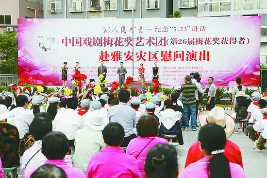 剛剛在成都獲得梅花獎的演員為雅安地震災區群眾送上了一臺精彩紛呈的文藝演出