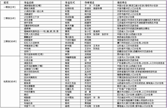 第十四屆中國(guó)人口文化獎(jiǎng)(民間藝術(shù)品類(lèi))獲獎(jiǎng)作品名單(36件)