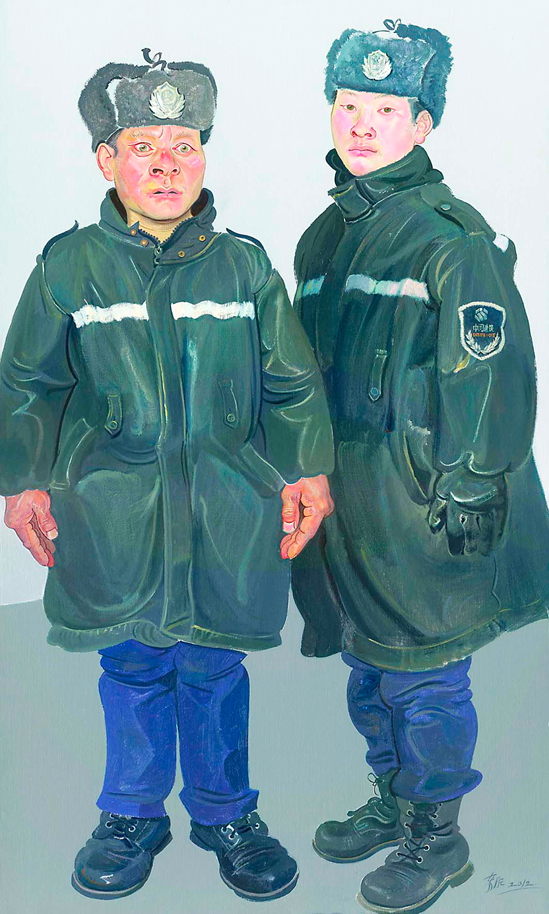 從上世紀90年代起,忻東旺開始關注農民工群體,“第一代的農民工進城打工,單純地為賺錢,然后回家鄉,他們主要在建筑行業做工;如今近20年過去,第一代農民工已經老去,第二代和他們完全不一樣。他們為了增長見識、開拓自己的未來,務工有了闖江湖的味道。工作種類也十分復雜:保安、模特、群眾演員——在我們學校中的農民工,做模特是無奈之舉,他們最想做演員,王寶強,是第二代農民工的精神領袖。”忻東旺表示,他對農民的認識是基于對人的理解,不是專畫農民,而是為了理解人,解讀、感受形象之下潛在的微妙信息。