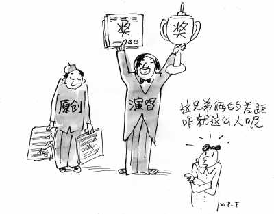 目前從央視到地方衛(wèi)視,作為傳播力最強(qiáng)、受眾最廣泛的電視熒屏,我們還無法找出一個真正有影響力的以傳播原創(chuàng)音樂作品為核心的音樂節(jié)目,就連觀眾期待的央視青歌賽,近兩屆也取消了新作品加分的規(guī)則。是我們?nèi)鄙僖魳穭?chuàng)作人才嗎?當(dāng)然不是,我國每年從各大音樂院校走出的音樂創(chuàng)作者不計其數(shù),大多都在默默地致力于原創(chuàng)音樂。但是,他們沒有展示的平臺,有的中途改行,有的只好自我欣賞,有的甚至在地下通道賣藝。廣播電臺雖然有新歌榜,但是廣播的聽眾有限。網(wǎng)絡(luò)音樂傳播受眾雖然不少,但是網(wǎng)絡(luò)傳播更加個人化,沒有藝術(shù)標(biāo)準(zhǔn),甚至不可避免地傳播了一些低俗化的歌曲。流行音樂文化是最具普及性的大眾文化,音樂文化的傳播離不開最具大眾傳播屬性的電視載體。中國電視的頻道數(shù)量、節(jié)目播出量均居世界前列,但是目前眾多的電視音樂節(jié)目幾乎都在“拼表演”,而不是“拼原創(chuàng)”。