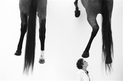 一位觀眾在瑞士巴塞爾觀看意大利藝術家莫瑞吉奧·卡特蘭的作品。圖/IC