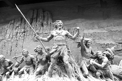 水洞溝遺址博物館里的水洞溝人塑像。樓定和/CFP