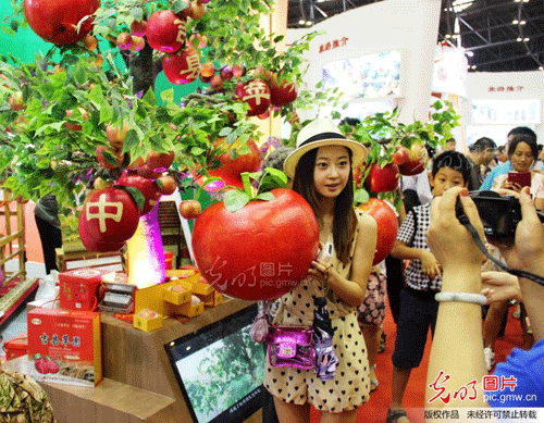 6月29日至7月3日,在中國(guó)(太原)煤炭交易展覽中心舉辦的首屆山西文博會(huì)上亮點(diǎn)頗多,臨汾市吉縣的藝術(shù)蘋(píng)果樹(shù)便是其中一個(gè)。藝術(shù)蘋(píng)果樹(shù)吸引了眾多參觀者的目光,大家都紛紛在這棵造型漂亮、果香襲人的蘋(píng)果樹(shù)前拍照留影,并當(dāng)場(chǎng)試吃。