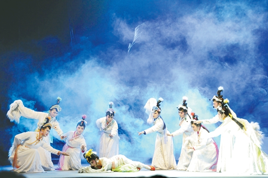 “一部聊齋半部狐,蒲公著意著奇書。浮白載筆寫荒誕,孤憤卻作笑談出?!?月4日晚,隨著一段優美的旋律在耳邊響起,舞臺上山石后忽然探出一只美麗白狐,在亦真亦幻的美景中,新編聊齋五音戲《云翠仙》在北京長安大戲院唱響。空靈玄幻的舞臺效果,有著“北方越劇”之名的婉轉唱腔,融淄博本土文學藝術于一體,凸顯了“聊齋故里書儒林心史,五音經典譜人狐傳奇”的地域文化意蘊。