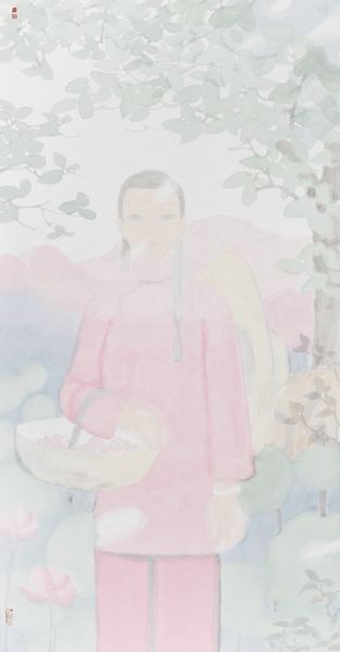 田黎明先生為中國當代水墨人物畫成功變革的典型代表。他在立足中國傳統繪畫的文化基礎上,借鑒西方繪畫技法,將中國傳統的沒骨人物技法與西方光影效果進行了創造性的融合,將鄉村、都市中陽光、空氣、水和人物朦朧成一種純粹、通透、靜謐的詩意存在,極大的豐富了現代人物畫的表現力,創造出一種全新的水墨人物風格。展出的《映山紅》《山水高士圖》等作品均為他這種風格的代表。