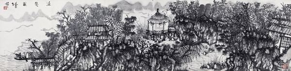 田黎明《山水高士圖》 34x135.8cm 2012年