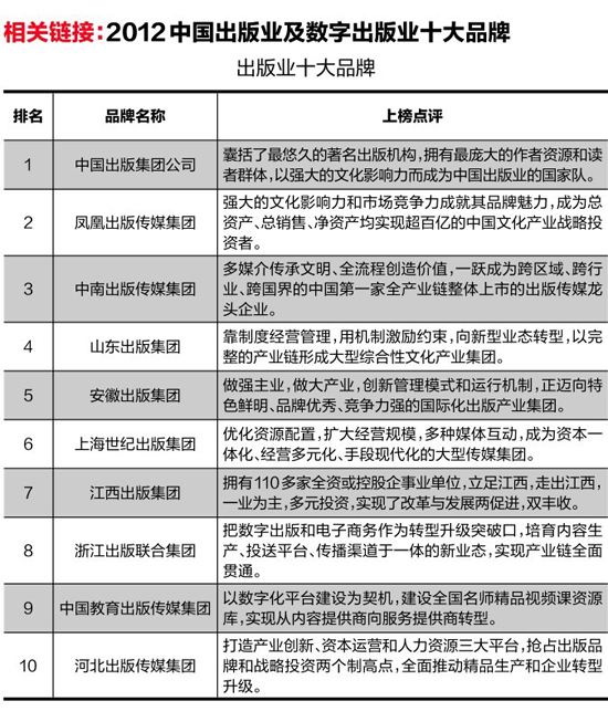 《報告》對15個業態門類的文化品牌發展進行了總結,形成了15個年度文化品牌分報告,這些業態包括:電影業、電視業、新媒體業、報業、出版業、期刊業、廣告公關業、演藝業、動漫游戲業、數字出版業、會展業、藝術品拍賣業、文化旅游業、對外文化貿易業,以及文化產業園區業等。文化品牌年度分報告對各門類的文化品牌在2012年取得的成績進行了總結,重點探討了各門類文化品牌和龍頭企業的成功經驗,有針對性地提出了發展對策。《報告》還對15個主要文化產業門類最具影響力的年度品牌進行了入榜排行,每個門類遴選了排名前十的文化品牌予以上榜點評,旨在助推中國文化產業在品牌的引領下更好更快發展。