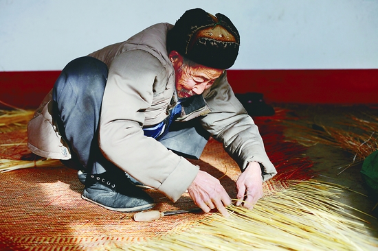 泊里紅席——青島膠南市泊里鎮民間傳統工藝,已有2000多年歷史。這種席是用高粱秸劈成篾子,有紅白兩種顏色,交叉編織出各種不同花紋,故稱紅席。看似簡單的一領紅席,實際操作起來所經的工序卻不少于30道。高粱秫秸經過去根、剔梢、捆坯子、破篾子、刮篾子、編隔子、挑席子等多遍工序和繁重勞作以后,一領成品席才能誕生。最為重要的是,所有的工序,均是純粹手工完成。制作的材料、工具、環境都難得地保留了原始,稱得上是一項獨一無二的古老且充滿溫情的手藝。因為工序復雜,制作周期長,收益并不很高,目前從事制作的多為年老的長者,加工過程中,對細小篾子的處理,全憑經驗和感覺,所以,今后手藝的傳承也是個課題。