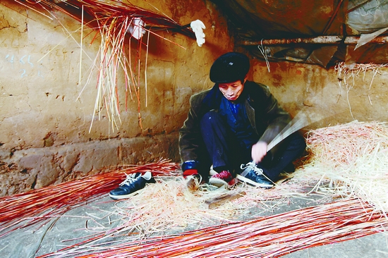 制作環境要保持足夠的濕度,干燥了篾子就容易斷裂。這是當地一種特有的專為編織紅席建造的“地屋子”,屋子非常矮小,三分之二在地面以下,以保持潮濕。