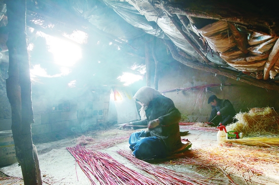 目前也有在村鎮建設的比較好的環境里集中制作的,同樣要保持足夠大的濕度,所以長期從事制作工作,很容易患風濕病。