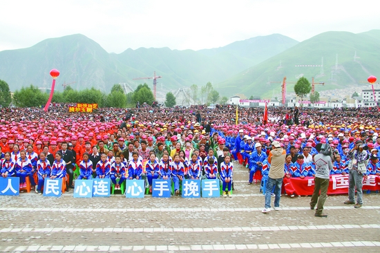玉樹各族各界幾萬名觀眾來到現場熱情觀看慰問演出